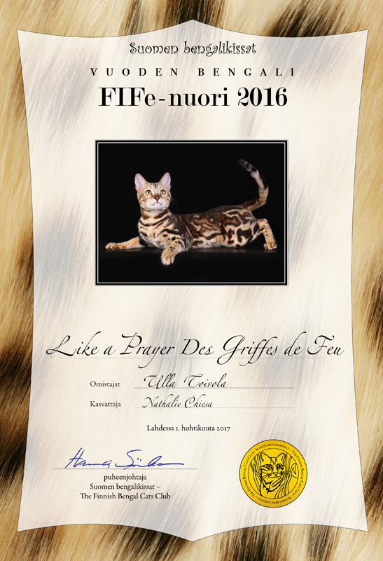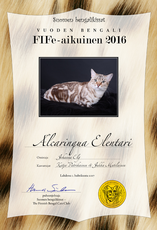 Suomen Bengalikissat ry:n vuoden 2016 parhaat kissat esittäytyvät.