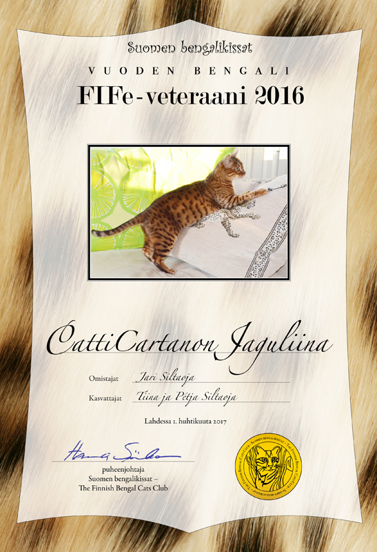 Vuoden FIFe-veteraani: CattiCartanon Jaguliina